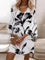 This mini dress features a flattering V-neck and practical 3/4 sleeves in a groovy design that balances style with comfort. The abbreviated length creates a leg-lengthening effect while the sleeve design offers versatile seasonal wearability.