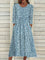 Loose Casual Disty Floral Crew Neck Long Sleeve Maxi Dress
