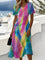 Special V-Neck Color Block Print Short Sleeve Midi Dress