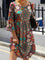Vintage Bohemian Printed Round Neck 3/4 Sleeve Dress
