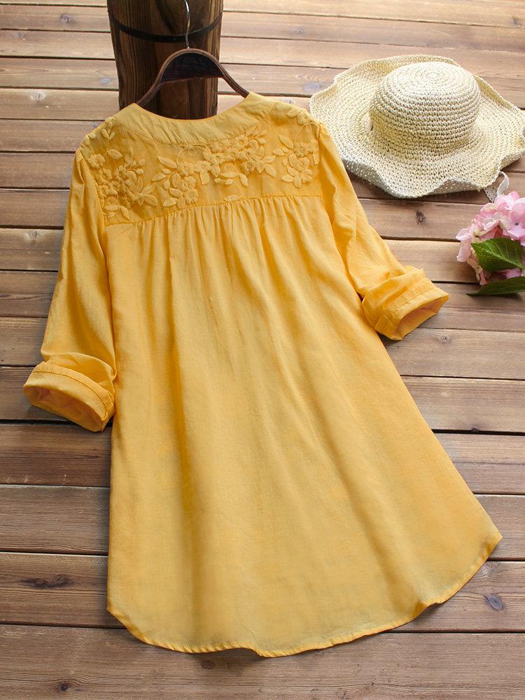 Add a touch of vintage charm with this Patchwork Floral Embroidered Irregular Blouse. Featuring intricate floral embroidery and a unique patchwork design, this blouse offers an irregular hem and a relaxed fit. Perfect for adding a distinctive, retro flair to your wardrobe.