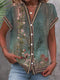 Women’s Summer Cotton Short Sleeve V-Neck Button Top with Pockets