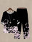 Schwarzer, lässiger, zweiteiliger Anzug mit Rundhalsausschnitt und Print für den Alltag