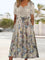 Damen-Midikleid mit kurzen Ärmeln, V-Ausschnitt, grafischem Print und Spitzenstickerei
