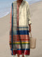 Mit diesem farbenfrohen, gestreiften Maxikleid im Colorblock-Design gelingt Ihnen mühelos ein stilvoller Look. Die lockere Silhouette mit kräftigen Farben und vertikalen Streifen bietet sowohl Komfort als auch einen attraktiven Blickfang. Der weiche Stoff fällt wunderschön und eignet sich perfekt für entspannte Alltagsoutfits, Strandbesuche oder lässige Wochenenden. Praktische Seitentaschen runden das Design ab, während der verspielte Patchwork-Look Ihrer Sommergarderobe eine einzigartige, künstlerische Note verleiht.