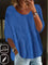 Blaue, locker sitzende Bluse mit Rundhalsausschnitt und halben Ärmeln
