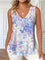 Lässiges ärmelloses T-Shirt mit Farbverlauf, Blumenmuster und V-Ausschnitt