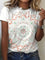 Lässiges Kurzarm-T-Shirt mit Mandala-Blumenmuster und Rundhalsausschnitt