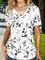 Lässige Kurzarmbluse mit Blättermuster, V-Ausschnitt und kurzem Ärmel