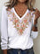 Schickes weißes Langarm-Top mit Blumenmuster, V-Ausschnitt
