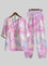 Rosa, lässiger zweiteiliger Anzug mit Rundhalsausschnitt, Batikmuster und halben Ärmeln