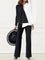 Ensembles deux pièces noirs décontractés à col en V et manches longues color block