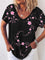 T-shirt à manches courtes et col en V imprimé fleurs de pêcher