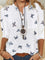 Chemisier blanc à col en V et manches 3/4 imprimé papillon
