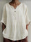 Chemisier blanc abricot décontracté à col en V et imprimé à rayures et manches courtes