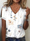 Chemisier blanc décontracté à col en V et imprimé floral, manches courtes