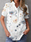 Chemisier blanc décontracté à col en V et imprimé floral, manches courtes