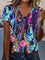 T-shirt à manches courtes et col en V pour femme, imprimé floral