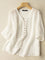 Chemise femme unie à col en V, boutons sur le devant, en coton, manches 3/4