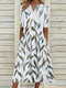 Robe midi ample à manches courtes et poches, imprimée de motifs botaniques bleus pour femme