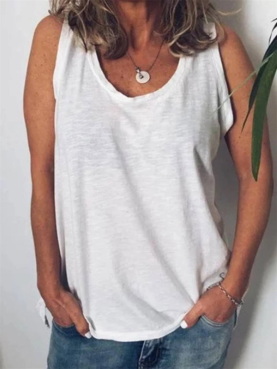 Pièce indispensable de votre garde-robe, ce débardeur uni sans manches est parfait à porter seul ou sous un autre vêtement. Son col rond simple le rend facile à assortir.