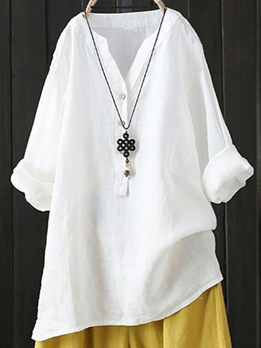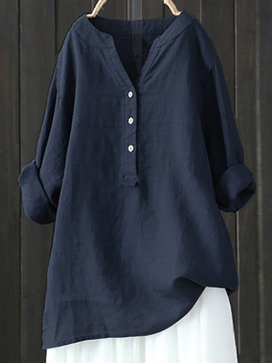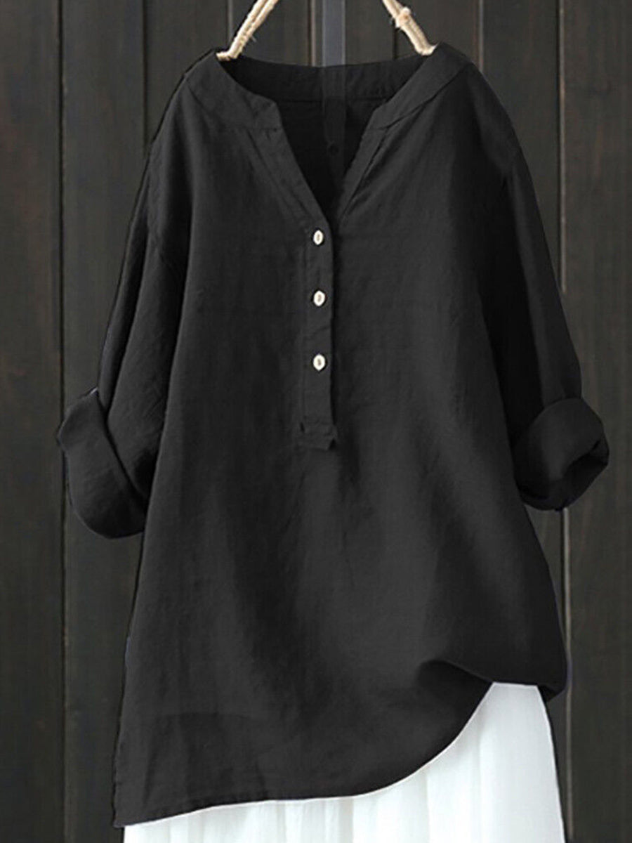 Haut à col montant, couleur unie, boutonné, manches longuesHaut à col montant, couleur unie, boutonné, manches longues
