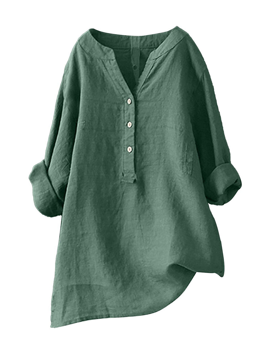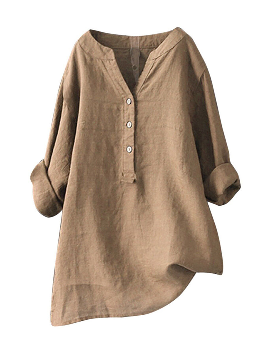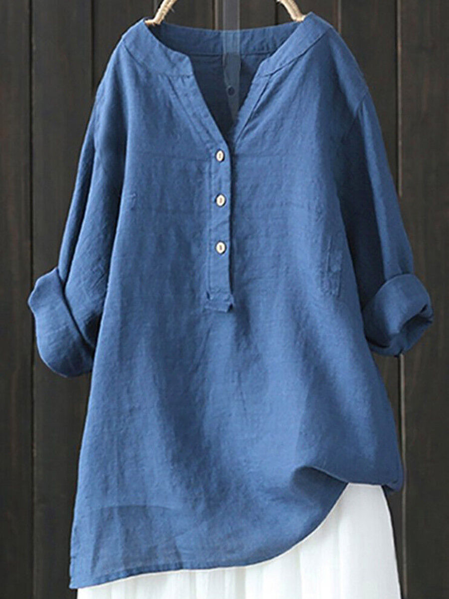 Haut à col montant, couleur unie, boutonné, manches longuesHaut à col montant, couleur unie, boutonné, manches longues