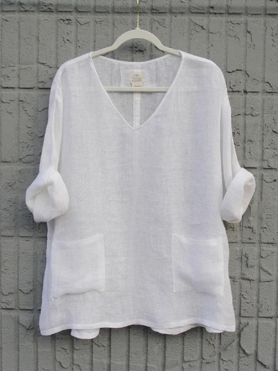 Chemisier blanc décontracté à col en V et manches longues