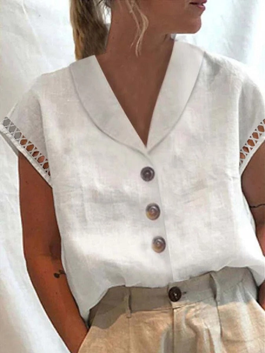 Chemisier blanc décontracté à col en V et manches courtes