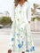 Robe midi à manches longues et col en V pour femme, imprimée de fleurs et ornée de dentelle.