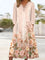 Robe midi à manches longues et col en V pour femme, imprimée de fleurs et ornée de dentelle.