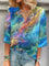 Abstract Gradient V-neck 3/4 Sleeve Loose Blouse
