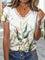 Floral Print V-neck Lace Short Sleeve T-shirt