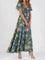 Fresh Floral Print V-neck Short Sleeve Green Maxi Dress