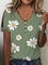Green Casual V Neck Floral Printed Short Sleeve Blouse