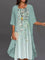 Green Floral Print Round Neck Half Sleeve Midi Dress With Outerwear