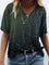 Green V-neck Loose Short Sleeve Cute Printed Blouse