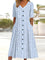 Freshen up your everyday wardrobe with this casual striped midi dress. Featuring a flattering V-neckline and a full button-down front, this dress brings together classic style and modern comfort. The light blue vertical stripes visually elongate the silhouette, while the mid-length hem offers an easy, elegant look suitable for daily wear. Soft short sleeves and practical side pockets make it perfect for warm-weather outings, vacations, or relaxed weekends. Pair it with sandals for a simple, polished style.