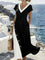 Black Color Block V-neck Short Sleeve Midi Dress