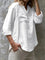 Casual Solid Color V-neck Long Sleeve White Blouse