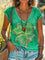 Four-Leaf Clover Print V-neck Short Sleeve T-Shirt