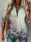 Green Casual Graphic Tops Lapel Long Sleeve Floral Printed with Buttons Blouse