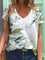 Leaf Print V-neck Short Sleeve T-shirt