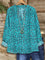 Leopard Print V-neck Long Sleeve Blue Top