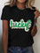 Lucky Print Round Neck Short Sleeve Black T-shirt