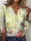 Romantic Floral Print V-neck 3/4 Sleeve Top