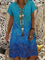 Short Sleeve Holiday V Neck Printed Short Dress