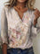 Sweet Floral Print V-neck 3/4 Sleeve Top