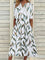 Women's Leaf Print V-Neck Half Sleeve Midi Dress with Pockets