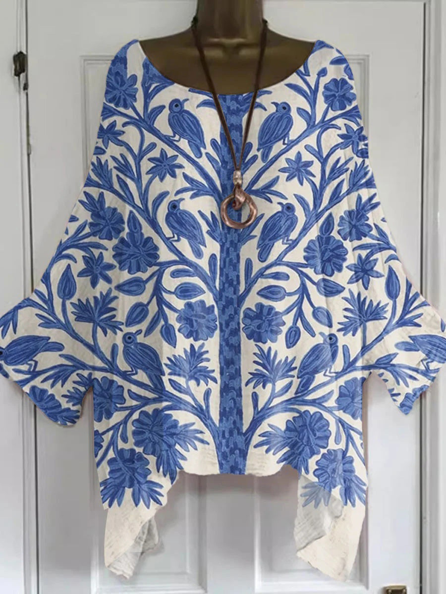 Featuring a serene tree art print, this vintage-style shirt brings nature-inspired beauty to your wardrobe. The long sleeves and round neckline offer comfort and a relaxed fit, making it a perfect choice for casual outings or cozy days at home.